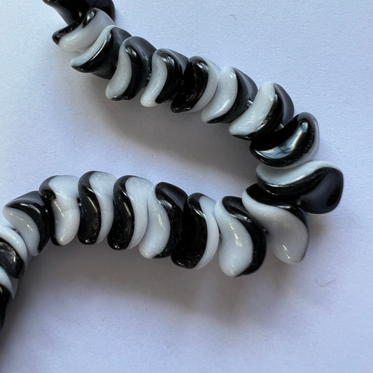 12mm x 8mm Czech Pressed Glass Twisted Spacer Black and White (Qty 12)