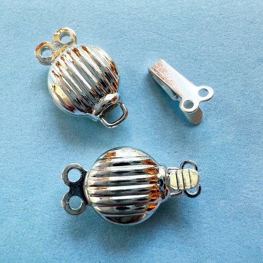 Box Clasp Corrugated Round (8x8mm) 2 Hole - Bright Silver (Pkg of 2)