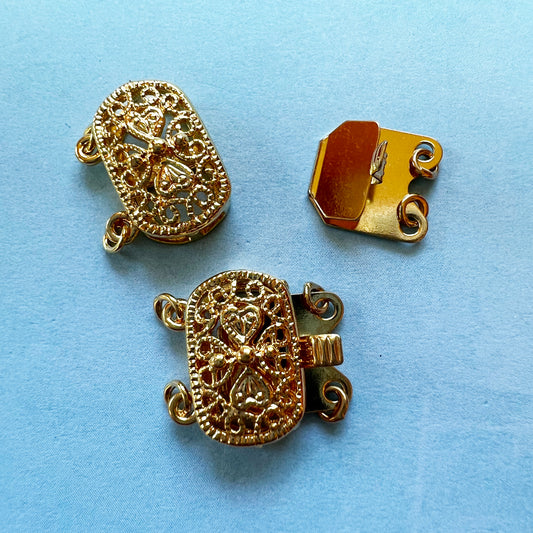 Box Clasp Oval Filigree (14x9mm) 2 Hole with Jump Rings - choose color
