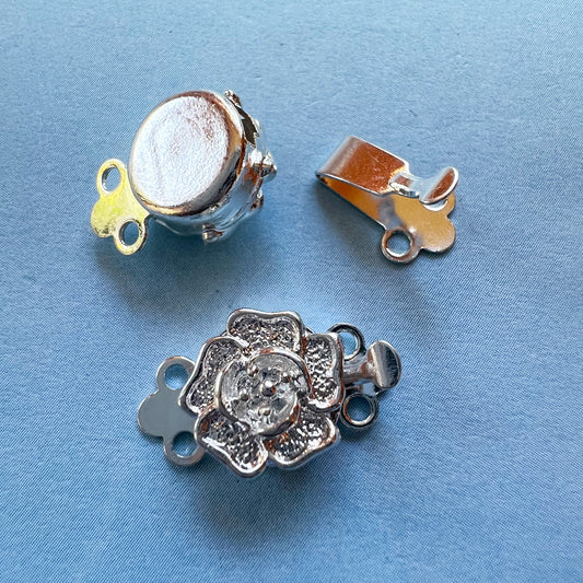 Box Clasp Rose (9x9mm) 2 Hole (1 piece) Bright Silver