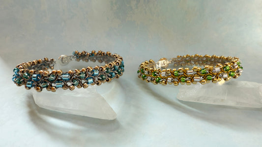 Unbalanced Bias Bead Bracelet Kit with Video Class - Champagne and Silver with Silver Lined Aqua & Lichen