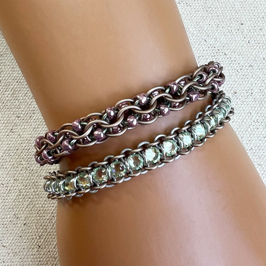 Byzantine Rhinestone Bracelet Kit and Video Class Silver Periwinkle and Amethyst