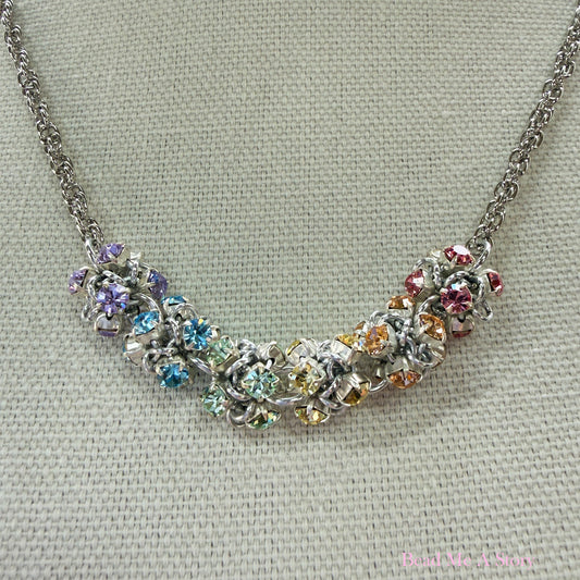 Caterpillar Rhinestone Link Necklace Kit with Video Class - Silver & Pastel Rainbow