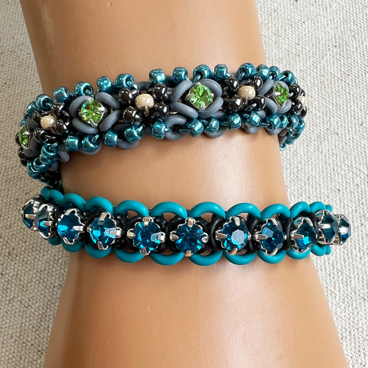 Rhinestone Ruffle Stretch Bangle Mini Kit & Video Class - Teal & Blue Zircon