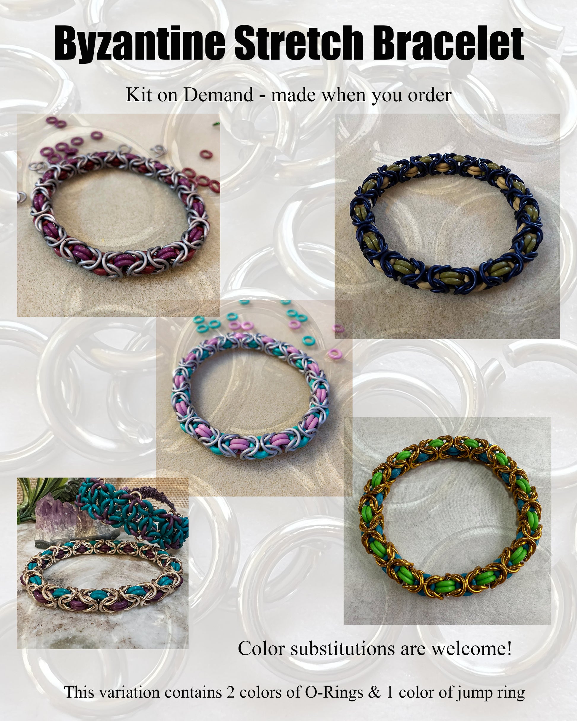 Byzantine Stretch Bracelet Kit with FREE video - 2 O-Ring Colors 1 Jump Ring Color (Kit on Demand)