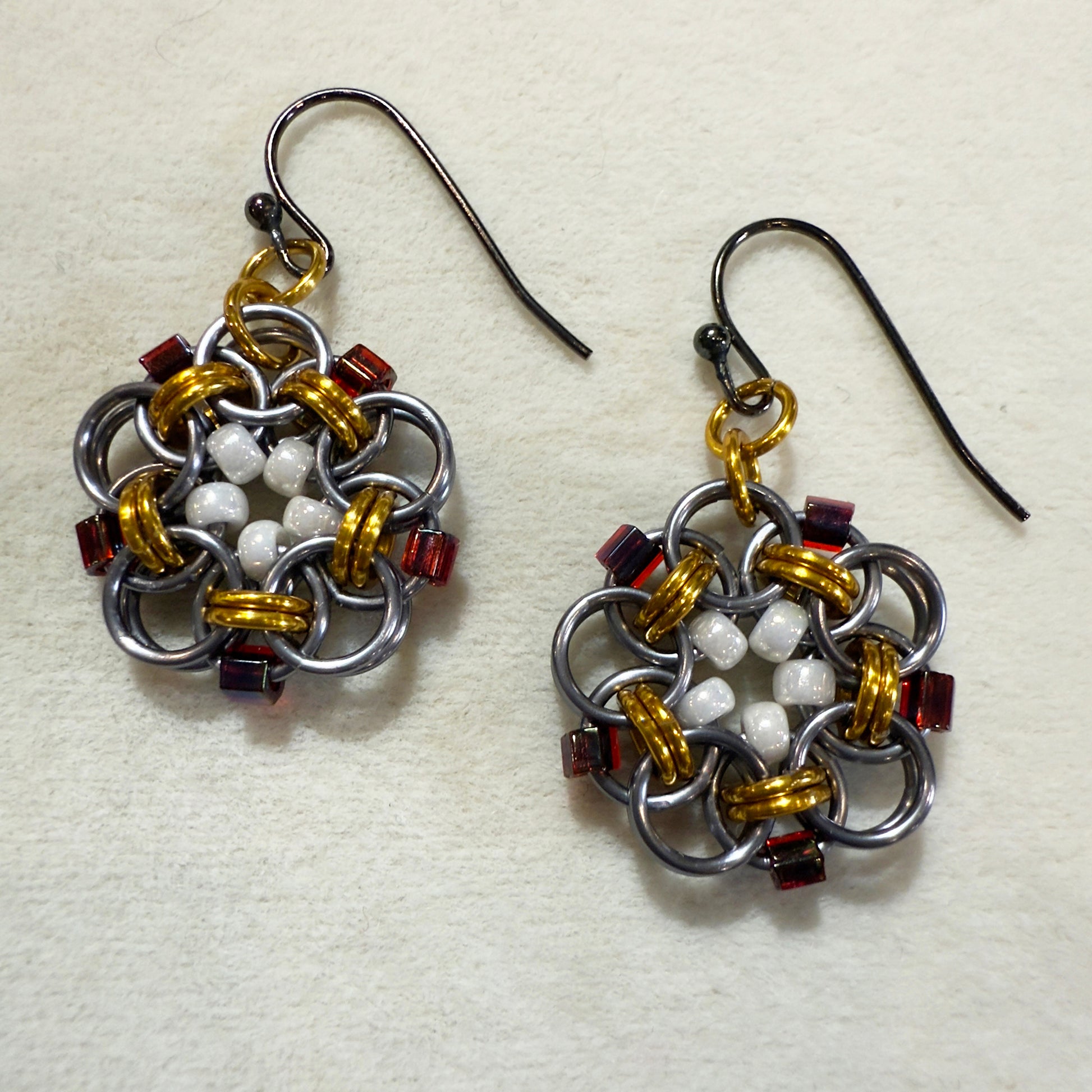Helm Beaded Circle Earrings Mini Kit with Free Video - Gunmetal, Gold, Garnet AB & Antique Ivory