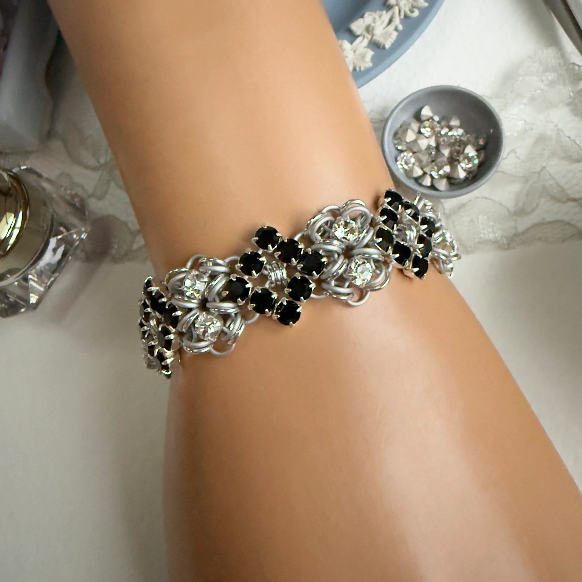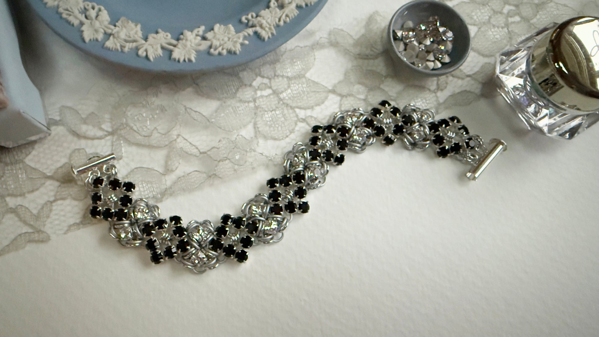 Rhinestone Buckle Bracelet Kit with Video Class - Silver, Frost, Jet & Crystal