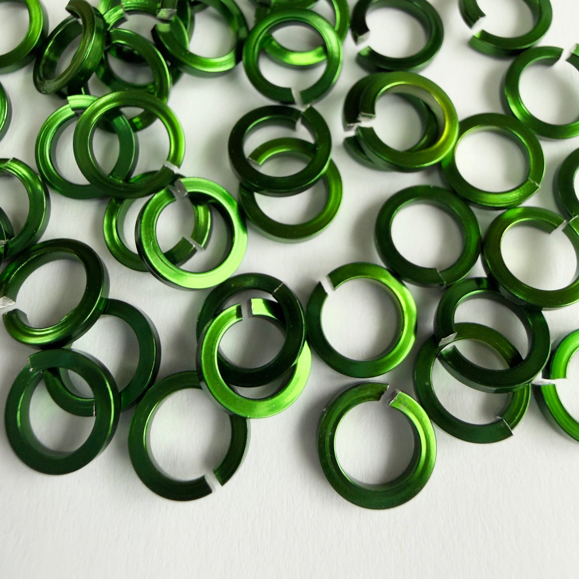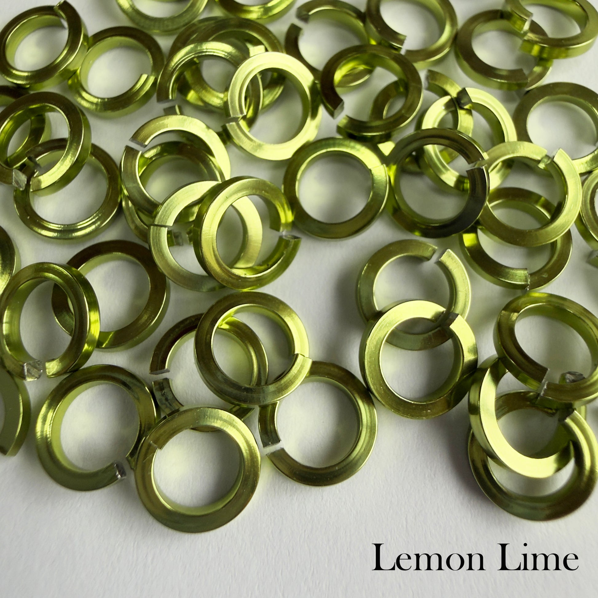 Anodized Aluminum Jump Rings do not tarnish. The finish lasts a long time and will stand up to quite a bit of wear. Aluminum is a very light weight but strong metal.