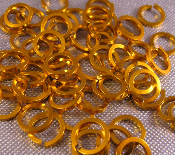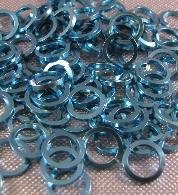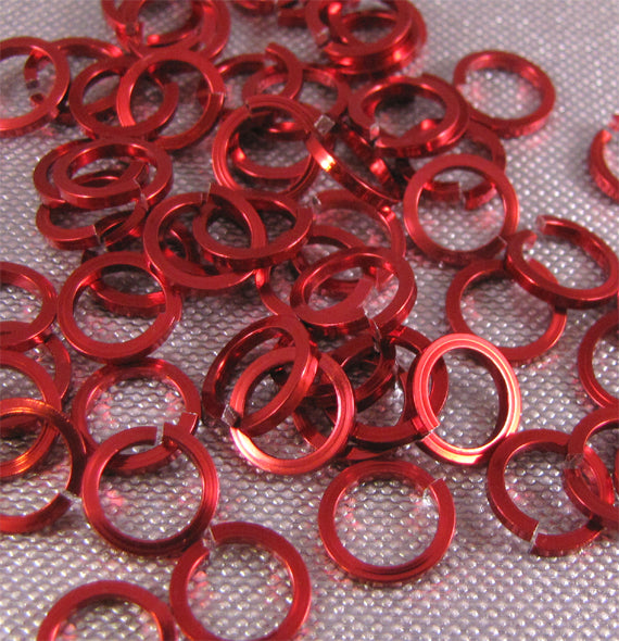 Anodized Aluminum Jump Rings do not tarnish. The finish lasts a long time and will stand up to quite a bit of wear. Aluminum is a very light weight but strong metal.