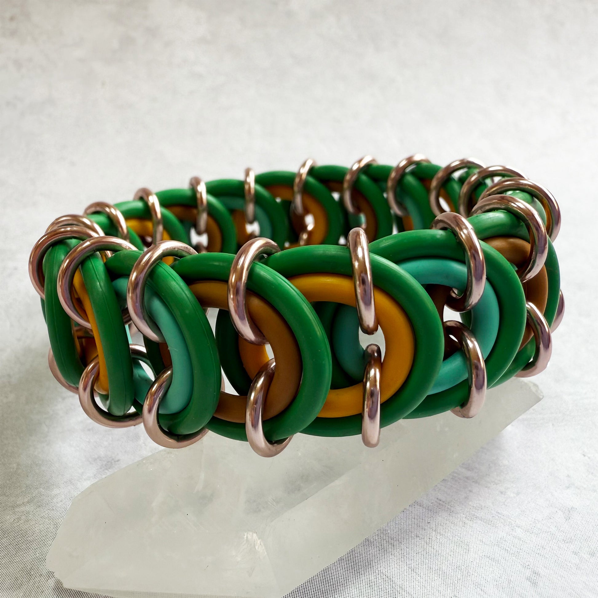 Create your own stunning chunky bracelet with the Vertebrae Stretch Bracelet Kit. This kit includes full-color photos and easy step-by-step written instructions, perfect for beginners. Featuring a beautiful mix of green, buttercup, aqua sea foam, and khaki tan with rose gold you'll craft a stylish, versatile accessory. Plus, enjoy access to a complimentary video class that guides you through every step, ensuring a fun and successful bracelet-making experience. Unlock your creativity and wear your handmade style with pride!