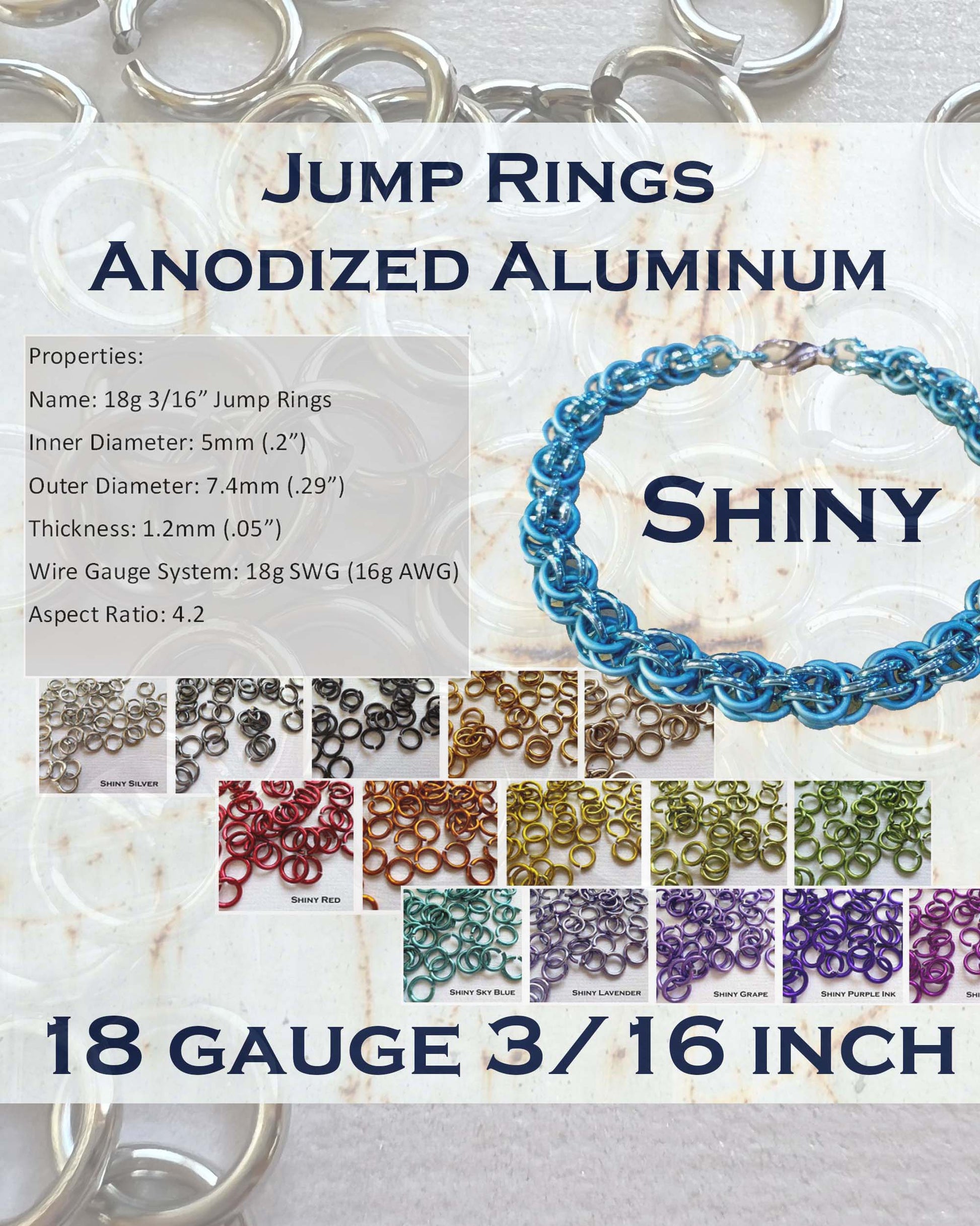 18g 3/16" Jump Rings Shiny (SWG) ID: 5mm - choose color & quantity
