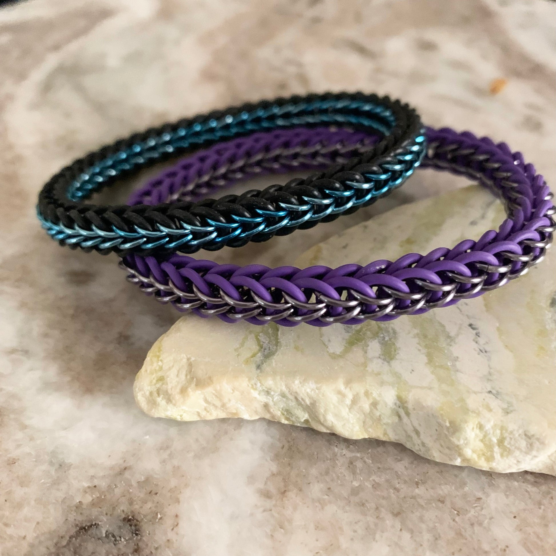 Just as our 7.4mm O-Ring is made to duplicate 18g 3/16" jump rings, this 6.6mm O-Ring is made to duplicate the size of and 18g 5/32" jump ring. Sample photo shows this color using Full Persian in Black and Sky Blue.